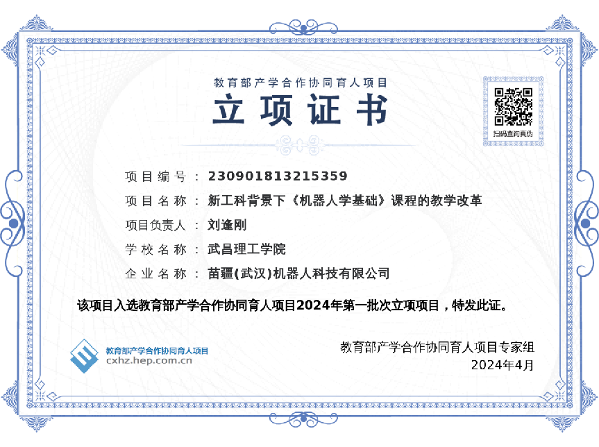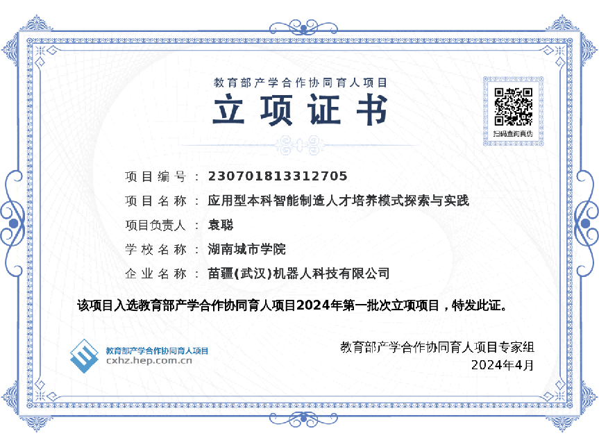 喜报!苗疆(武汉)机器人科技有限公司4个项目入选“教育部2024年第一批产学合作协同育人项目立项名单”
